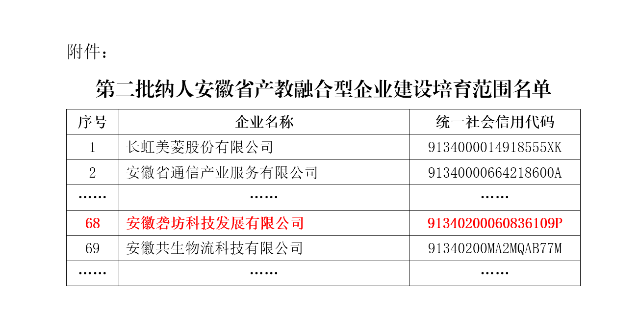 近期,省發(fā)展改革委、省教育廳、省人力資源社會(huì)保障廳公布第二批安徽省產(chǎn)教融合型企業(yè)建設(shè)培育范圍名單,安徽礱坊科技發(fā)展有限公司成功入選。